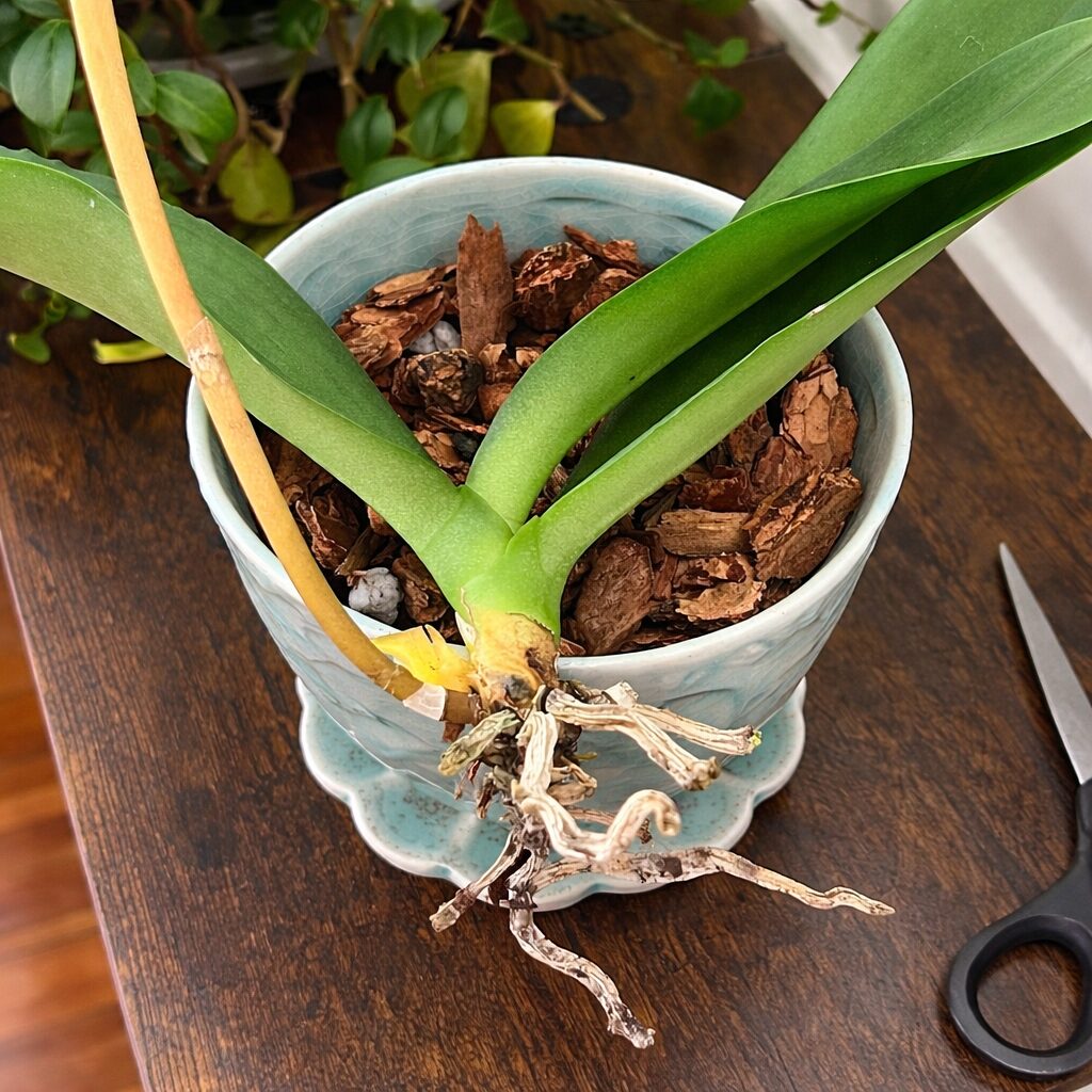 Repotting is usually not necessary when learning how to save an orchid with no roots until new roots appear. Focus first on recovery and root development. Once roots grow strong, you can transfer the orchid into a proper potting mix.