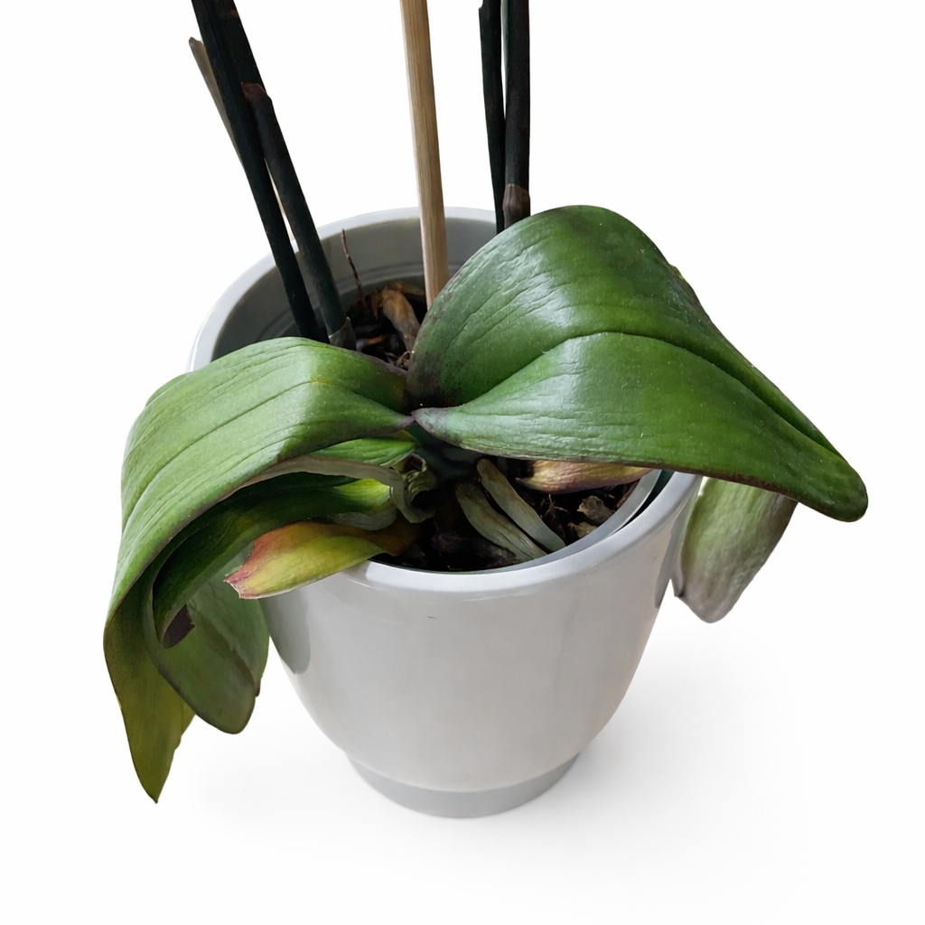 Protect orchids from direct heat sources or cold drafts. Stable temperatures help maintain healthy leaf firmness.